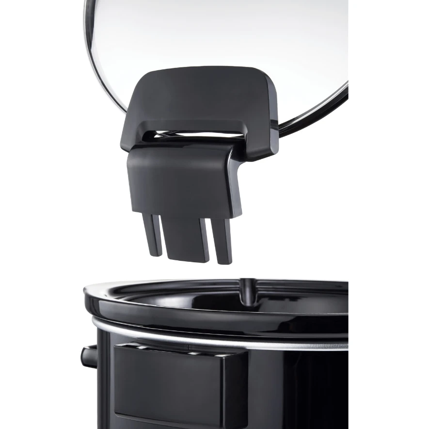 De Crock-Pot slowcooker is vervaardigd uit metaal en heeft een uitneembare ovenbestendige aardewerken binnenpot met een deksel. De slowcooker heeft een inhoud van 4,7 liter en is hiermee geschikt voor het bereiden van maaltijden voor 4 à 5 personen. De digitale Crock-Pot slowcooker is voorzien van een programmeerbare timer. Na het aflopen van de geprogrammeerde tijd schakelt de Crock-Pot direct over op de warmhoudstand, waarbij het voedsel op een veilige temperatuur warm gehouden wordt. Met een slowcooker gaart u bijvoorbeeld stoofpotten en soepen gedurende lange tijd op een lage temperatuur. Het glazen deksel van de Crock-Pot is voorzien van een scharnier aan de achterzijde, waardoor u het deksel eenvoudig open kunt zetten als u in de pot wilt roeren of er uit wilt scheppen.