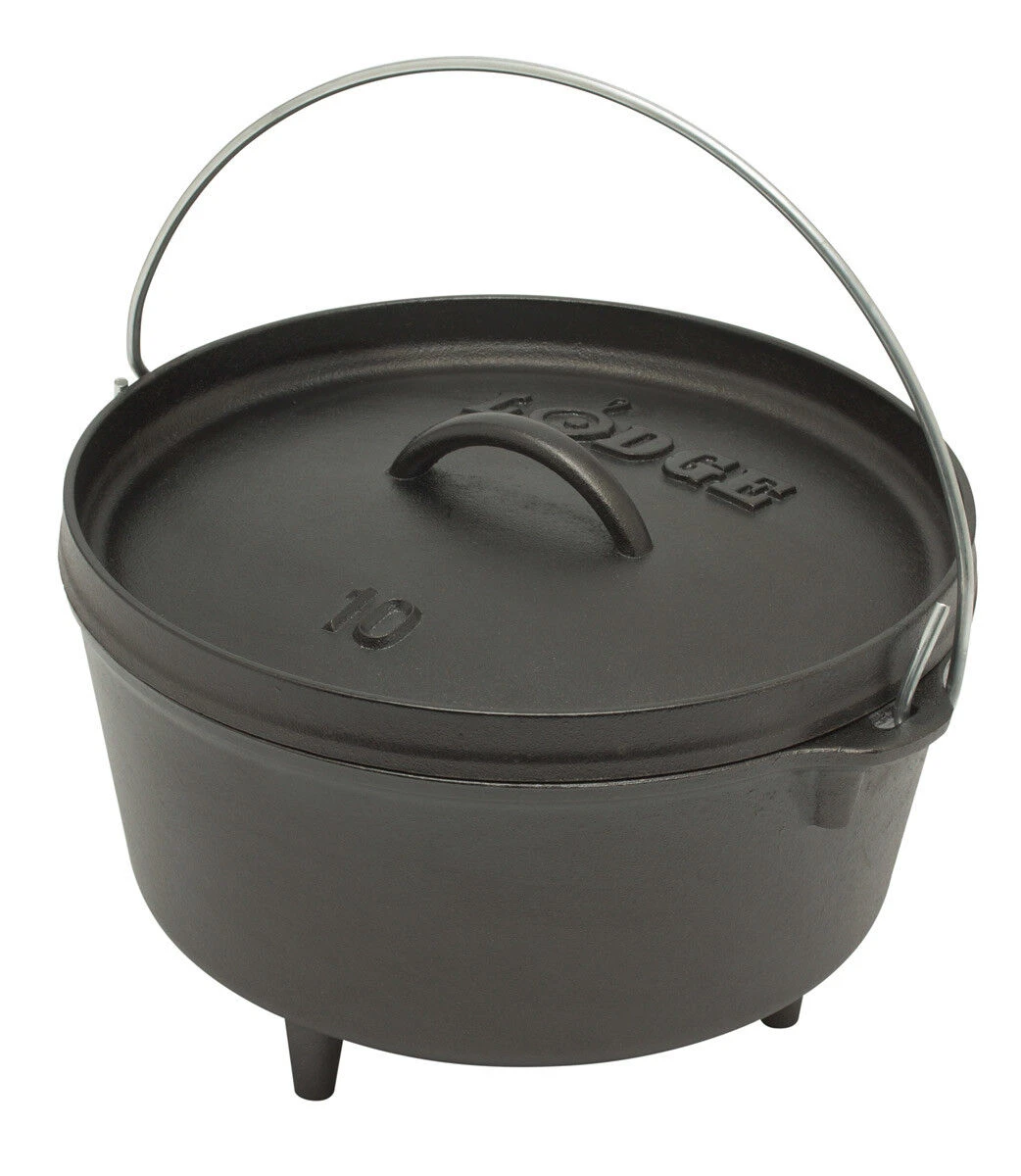 De Lodge Logic Deep Camp Dutch ongeëmailleerde gietijzeren stoof- of braadpan heeft een diameter van 25,4 cm. De inhoud bedraagt 4,7 liter. In deze extra diepe pan met roestvrijstalen hengsel en pootjes bereidt u voedsel op direct vuur, zoals een kampvuur.