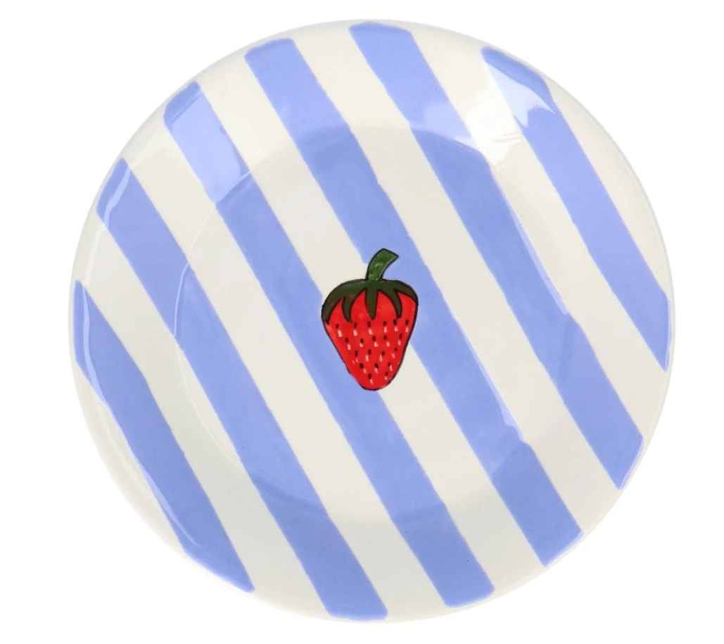 Het Oldenhof Aardbei ontbijtbord is gemaakt van geglazuurd aardewerk en heeft een diameter van 20 cm. Gebruik het bord voor het serveren van ontbijt of andere kleine gerechten.