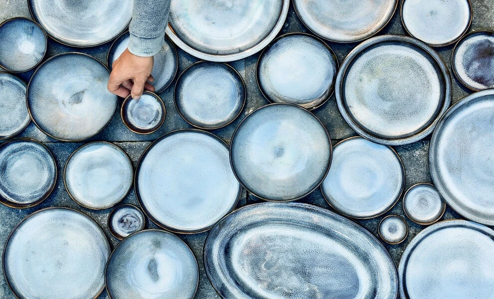 Serax Pure Bord Met Hoge Rand S ø 20 Cm Keramiek Blue Glazed