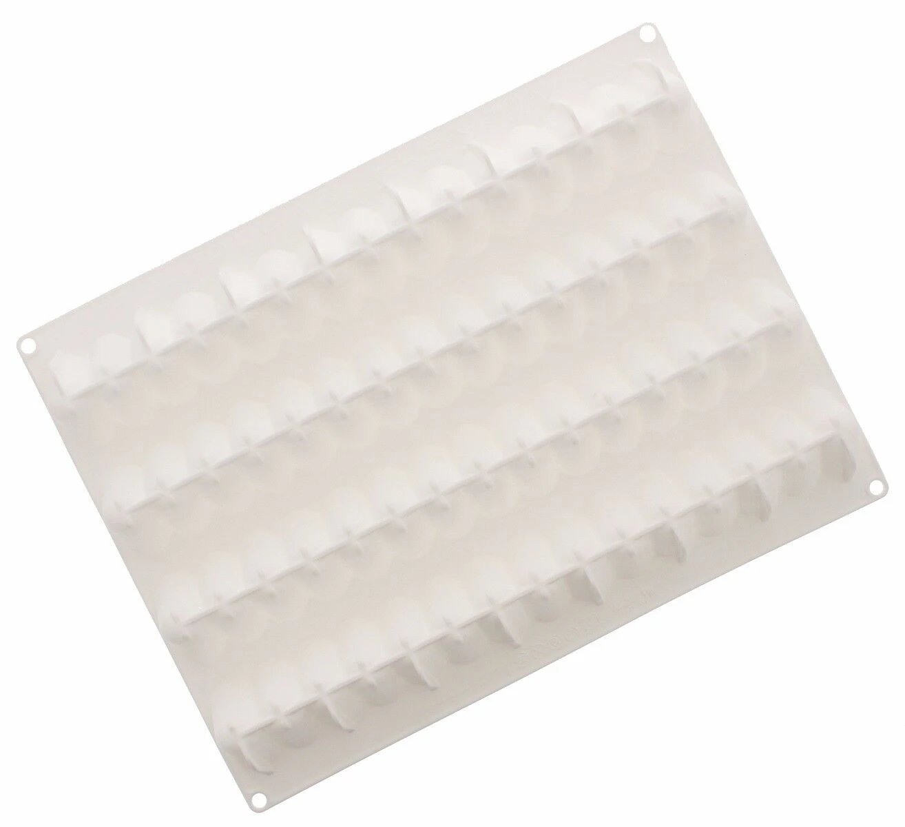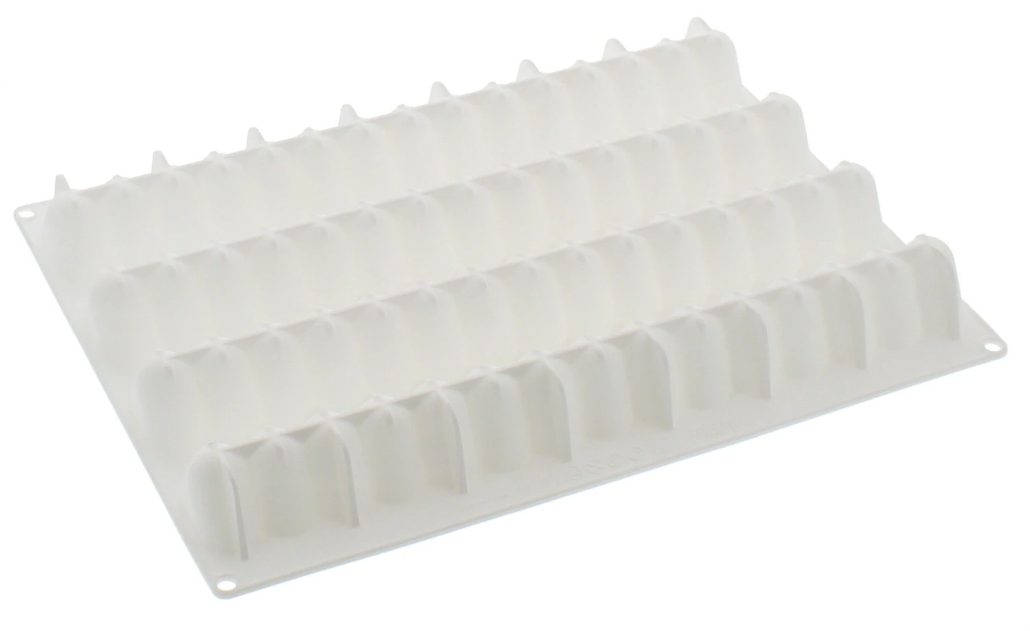 De Silikomart Professional Modular Flex trilogy 500 bakvorm bevat 4 rijen van 15 driehoekjes. Door de speciale rand zijn ook de onderzijden van de vormen netjes afgerond. Elk van de rijen driehoekjes heeft een inhoud van 500 ml. Door de vorm zijn de driehoekjes eenvoudig te portioneren in stappen van 33 ml. De witte siliconen bakvorm is 37,5 x 46 cm groot en geschikt voor gebruik in oven, magnetron en diepvries.