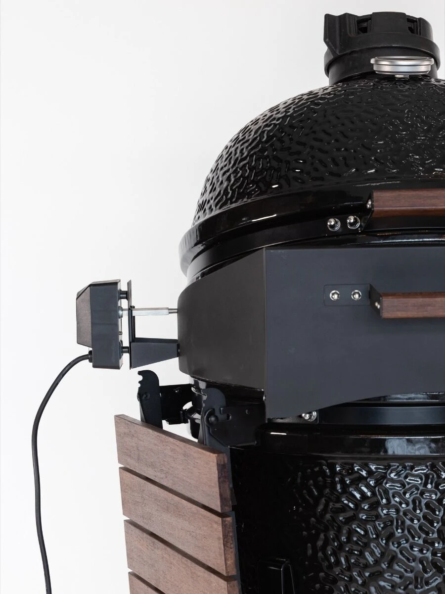 Met de The Bastard pizza-rotisserie kunt u zowel grote stukken vlees draaiend en gelijkmatig garen als knapperige pizza’s bakken. De accessoire is gemaakt van dubbelwandig materiaal wat zorgt voor een goede warmte-isolatie.